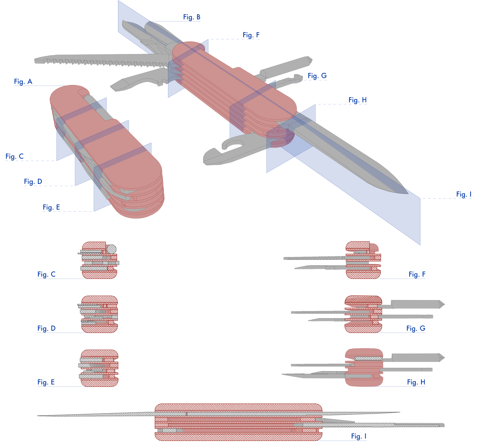 Perspective drawings and sections through a penknife SketchUp, Vectorworks