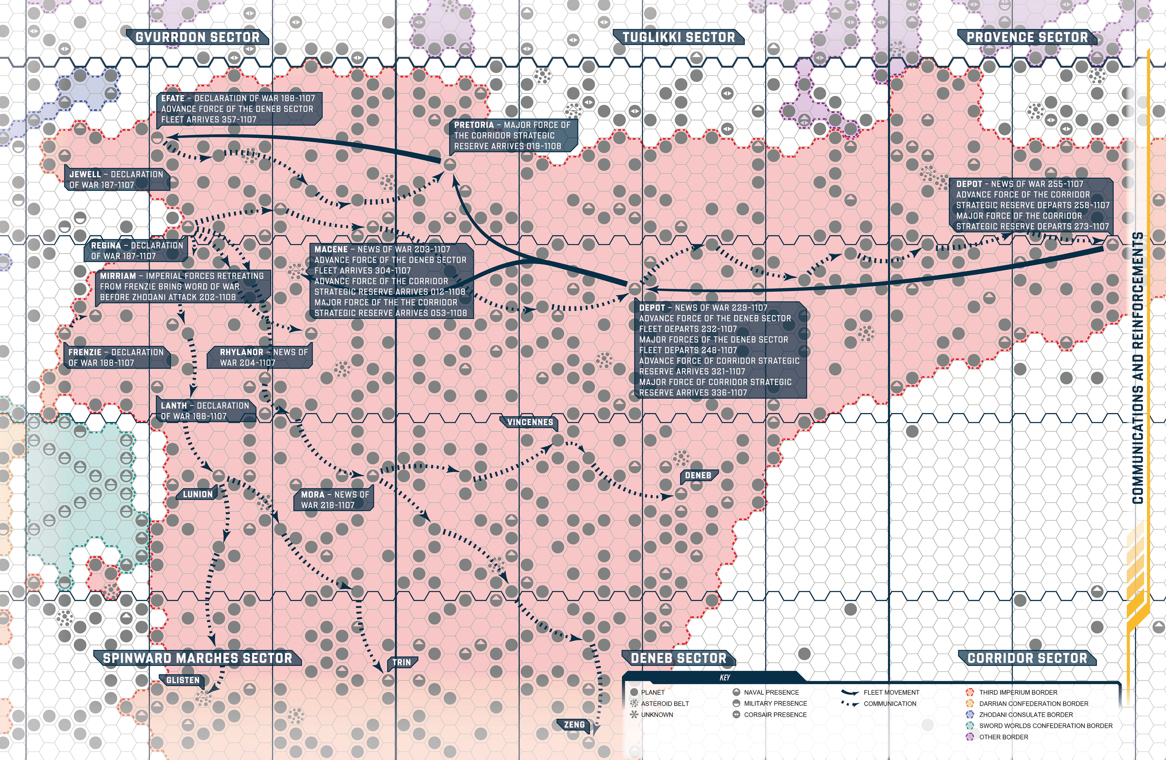 Fleet maps for Mongoose Publishing's Traveller 'The Fifth Frontier War'. A4—Adobe Illustrator